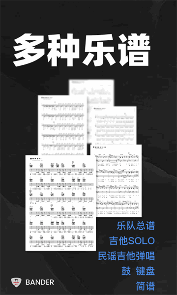 2、包含了海量的曲库,支持吉他,鼓,键盘和钢琴4种主流乐器线性乐谱显示;