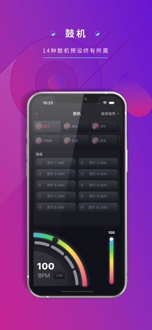 8、节拍器、10种音色,多种节奏拍子组合练习设定