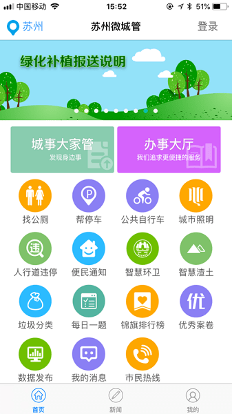 苏州微城管软件是面向苏州市市民朋友的城管服务管理平台,带来一站式功能,支持帮停车、智慧渣土、办事大厅、数据发布、人行道违停、找公厕、智慧环卫、城市照明、便民通知、市民热线、垃圾分类等服务,最新新闻及时更新推送,随时了解,轻松办理查询业务,便利城市日常生活!