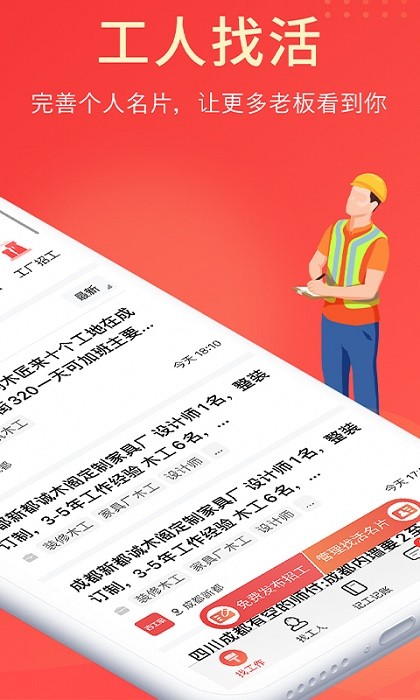 每天200000+条招工信息在线发布,超5000000工友在线找活,满足老板工人的在线招工找活需求,让建筑办工更高效、更智能、更便捷。