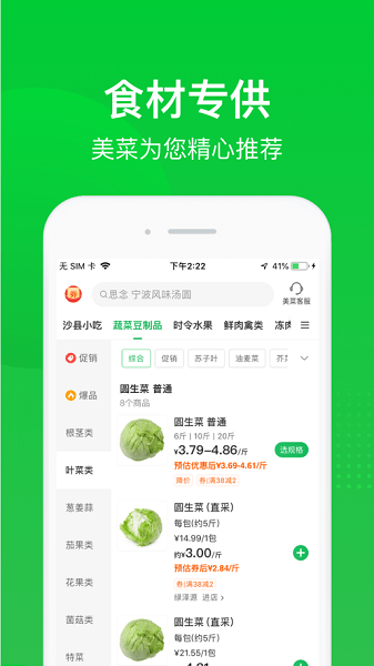 美菜商城app是超级好用的一款手机买菜购物类型的软件,在这里用户们能够找到超多种类的食品蔬菜等等的商品进行挑选购买,新鲜蔬菜、豆制品、水果、鲜肉禽类、粮油米面、蛋奶乳制品、速食冻品等等等等在这里全都能够找到,让用户们能够足不出户招待自己想要的各种各样的蔬菜食品,还有超多的优惠活动和优惠券让用户们能够省下不少的钱。
