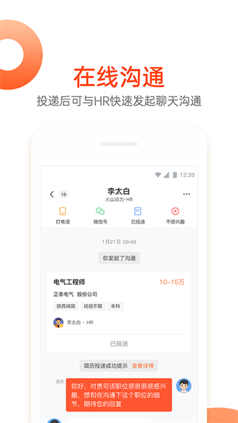 3、随时随地在线都可以与求职者进行交流,让面试更有效率;
