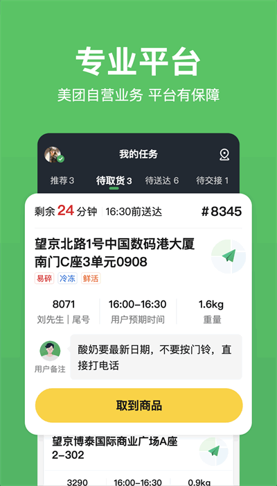 -- 专业平台:美团自营业务,平台有保障