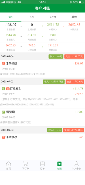 4、客户对账,收支更清晰,收入支出分类明确,收支金额精准掌握。