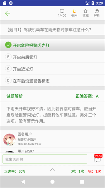 1.人性化设置字体大小、自动跳转下一题、夜间模式