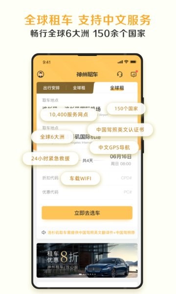 神州租车app最新版为大家提供最专业的租车服务,这里有多种车型,可以很好满足不同用户的出现需求;如果你是新用户,还可以享受到很多优惠,比如首次体验,可以获得120元消费券,租车更省钱。神州租车还提供很多优惠,欢迎大家来体验!