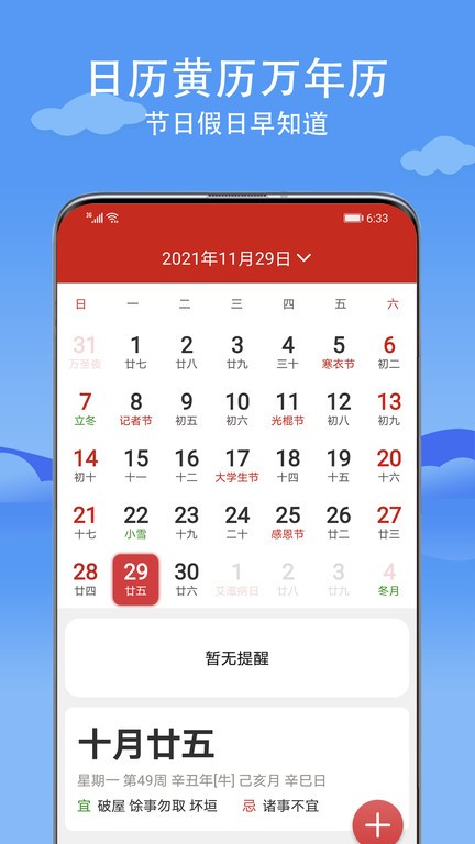 界面设计也很棒,各种城市美景和萌宠背景图让天气预报都变得有趣起来。操作简单方便,滑动就能快速查看天气趋势和生活指数。最让我惊喜的是它的日历功能,不仅能查询节日节气,还能设置提醒,简直是生活小秘书!