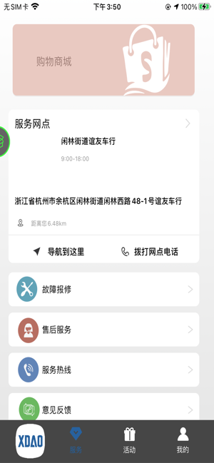 可查看最近的小刀服务网点,支持导航和拨打电话联系,方便线下购车和修车,同时可以反馈所遇到的问题。