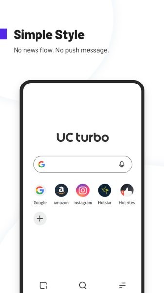 1、面向国外市场,相比国内版,UC Turbo没有添加任何多余功能,完全就是夸克最初的样子。没有垃圾新闻推送,体积小不臃肿。