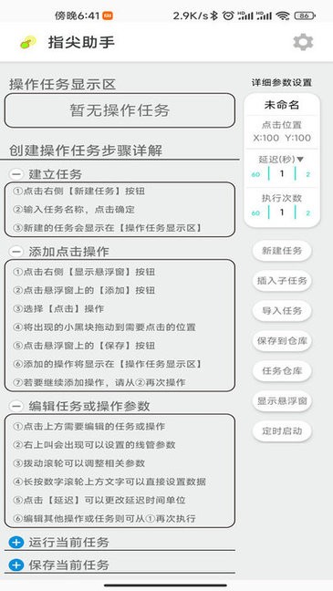 《指尖助手》是一款免root帮助用户进行自动点击、自动滑动、自动跳转等各项功能的强大工具软件,目前支持Android系统的各大厂商手机。