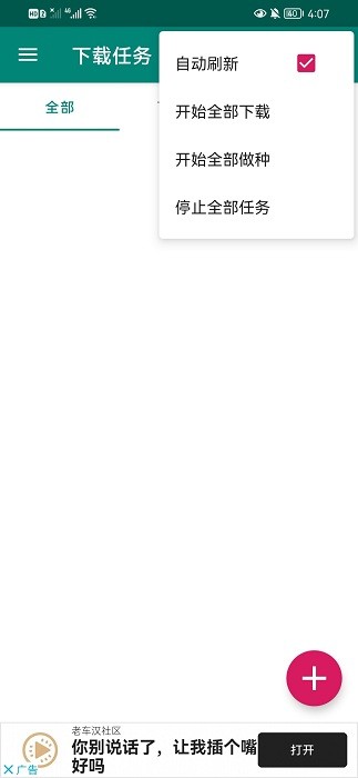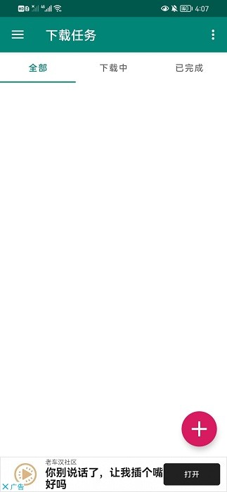 打开比特彗星手机版后,点击右下角的“+”,添加下载任务;