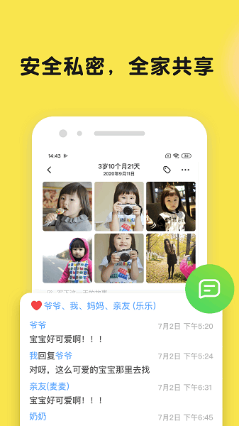 成长瞬间无损珍藏一处,永不丢失,注重隐私保护,收到邀请才能进入宝宝空间,私密安全;