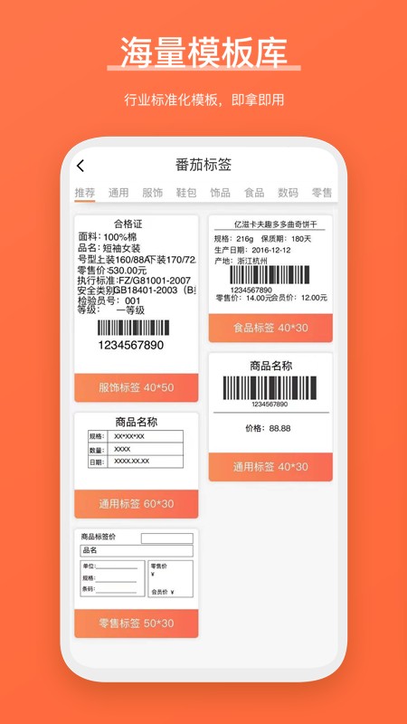番茄标签app最新版即原来的快麦标签,海量模板随心使用,可以自由插入条形码、二维码、文本、表格、图标、日期等,能根据实际情况进行标签的设置和打印,能上传相关的excel数据,能自由设置打印的字体大小、样式等。