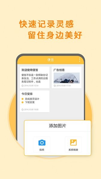 1、支持进行拍照记录,让记录的内容更清晰,同时也能更好的记录灵感;