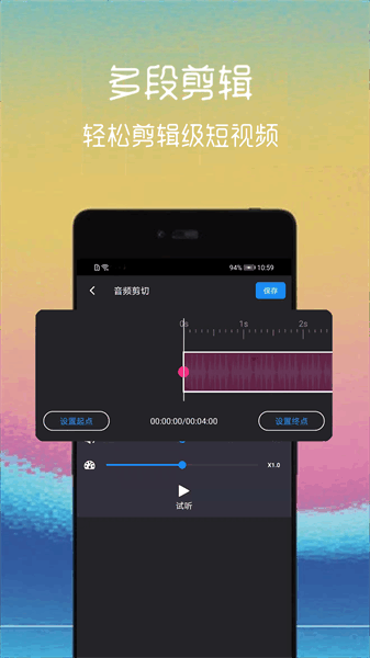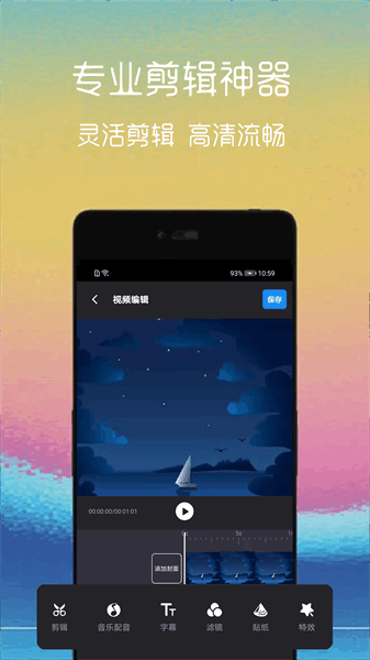 强大的剪辑功能,能让您随心剪切到0.1S,剪辑拼接,更贴心
