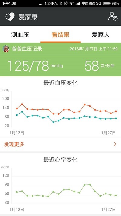 爱家康是iHealth智能云血压计搭配手机使用的专属app。手机和App连接简单,一点就测,同时为您提供专业的数据解读,让爸妈清楚明白。