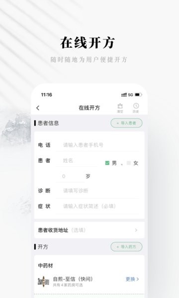 3、可以在线为患者开放,开具的全部中医处方可以自动规整保存;