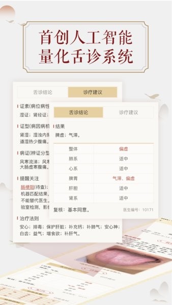 看舌头首创基于人工智能量化舌诊系统,已经申报七项国家发明专利,创新色彩校正技术;多项数学模型及舌症合参、辩证论治算法基本符合中医基础理论。