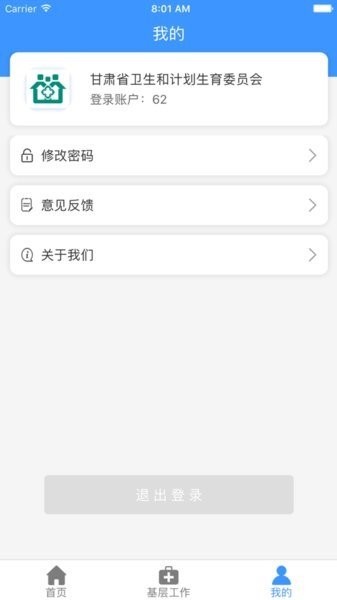 已经下载的学员打开甘肃基层卫生APP,输入用户名及密码,点击登录(用户名为身份证号,初始密码为身份证后6位)