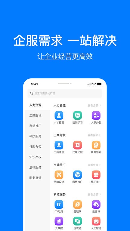 企多多,一站式企业服务互联网平台,为各大企业提供各类通用基础的企业服务信息,包括人力资源、工商财税、营销推广、办公软件、行政办公、法律服务、知识产权、政府服务等20多种品类。从成立至今,一直秉承以“让企业经营更高效”为使命,打造“企业服务超级平台”为愿景,努力通过互联网、大数据及人工智能等创新技术,通过线上线下相结合,为千万家企业打造一个综合服务的专属生态圈。