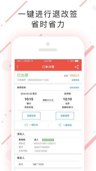 轻松预定机票,管理出行机票更简便;