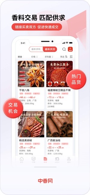 中香网最新版是针对香料市场提供行情资讯分析、供应的应用平台,带来一站式服务体验,全球最新资讯及时更新,实时跟踪香料行情,洞察市场,把握时机,涵盖各种香料产品,求购、供货一网打尽,支持在线交易,快速成交,每日报价、最新价格行情一目了然,精准锁定客户,助力决策!