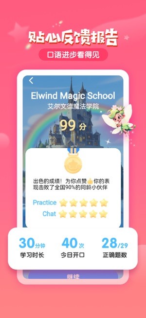 -- 为了让家长和孩子共同见证成长的每一步,【贴心反馈报告】定期呈现,清晰展示口语进步的点点滴滴。每一次进步,都如同魔法般清晰可见,激励着孩子们继续前行。