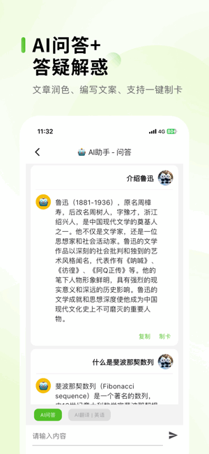 我们的AI功能为学习提供强大的支持。它可以帮助用户答疑解惑,对文章进行润色,提供学习灵感,同时还能提供数十个国家的语言翻译,使用户能够更轻松地学习和理解跨文化的知识。
