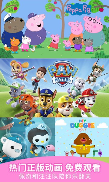 小猪佩奇,汪汪队立大功,超级飞侠,海底小纵队,小马宝莉,萌鸡小队,hi嗨!道奇,旋风战车队,大眼兔乐园,舒克贝塔,瑞奇冲冲冲,贝贝生活日记,小P优优,宇宙护卫队,变形警车,变形金刚,海绵宝宝,爱探险的朵拉,比得兔,小公交车太友,熊小米,碰碰狐,小恐龙乐园,安迪与动物宝宝,安迪的恐龙冒险,巴菲特神迷俱乐部等热门IP动画片播不停