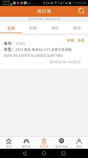 帮助用户轻松的查询各个汽车配件的订单信息;