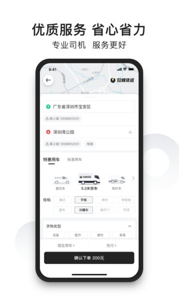 拉蜂货运支持个人用车、企业用车等货运场景,依托移动互联网、大数据和人工智能技术,搭建“方便、可靠、智能”的货运平台,只需一键下单,平台智能化调度车辆极速响应。拉货用拉蜂,便宜又轻松,平台持续保持价格优势,帮助客户节省大量用车成本,以服务好客户为优先,提升用户的叫车体验。用户版还分为特惠用车、 标准用车、企业用车等三个场景版块。