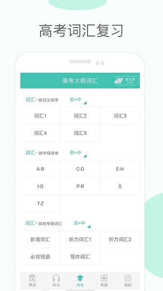 为用户提供大量专业英语学习教程,让用户可以在这里轻松学英语,快速提高英语成绩。让高中学子可以在这里更好的进行单词的学习,支持单词在线学习、单词智能记忆等功能,高中生高考背单词必备软件。