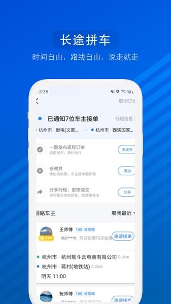 汽车版的12306,可在线购票、抢单、发布、退票、改签,