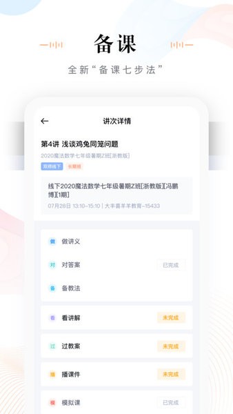 这个未来魔法校老师端APP听起来挺方便的,尤其是对于那些需要经常备课和管理学生学习情况的老师来说,简直就是神器!它支持双师课堂、AI课堂和面授课堂,老师们可以随时随地查看课程表、备课、批改作业,还能实时掌握班级的学习动态。特别是“备课七步法”听起来效率很高,学情分析也很详细,方便老师针对性辅导学生。