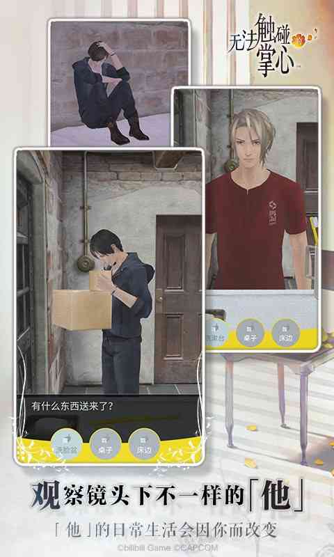 一切从指尖相触开始!女性向冒险解谜手游《无法触碰的掌心》由bilibili独家代理,CAPCOM倾力打造。全语音倾听[他]的声音,不只会面场景,包括迷你游戏等,全程都有语音对应!精美日系写实画风,由日本着名画师精心绘制,收录众多精美CG图鉴!悬疑动人故事剧情,甜蜜又苦涩的浪漫关系带来不一样的冒险!
