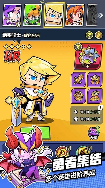 选择属于你的勇者,培养你的最强队伍;从英勇坚定的圣光剑士,到狡黠的魔术师,再到百变精怪的女巫......打造营地,装备和宝物,提升你的综合实力;