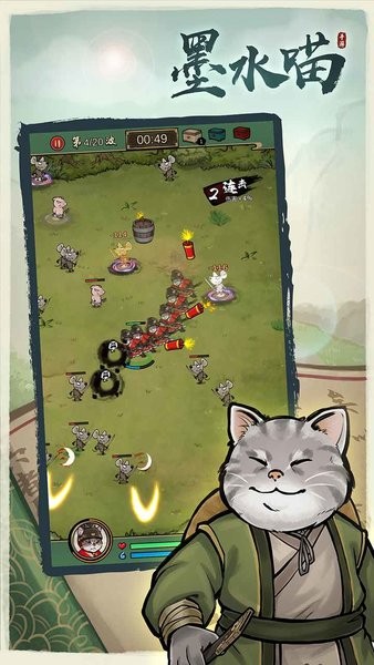 墨水喵游戏是以武侠作为背景打造的猫咪割草手游,玩家可以控制自己的猫咪在游戏之中消灭更多的老鼠,在游戏之中还可以培养不同的猫咪,还有丰富的装备和技能可以获得。