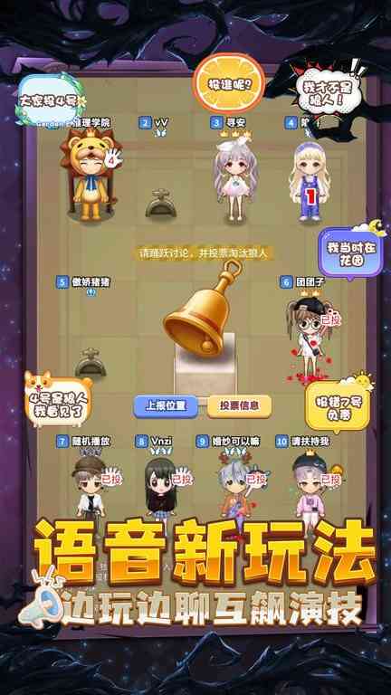 狼来了、谁是猪头王、天黑快闭眼、贪吃狼、宝石达人、炸弹猫、狼人游戏、剩者为王、猜拳等有趣玩法,让你飙演技、盘逻辑、秀操作、欢乐游戏,用你的表演征服他人!全新段位系统,与高手过招。
