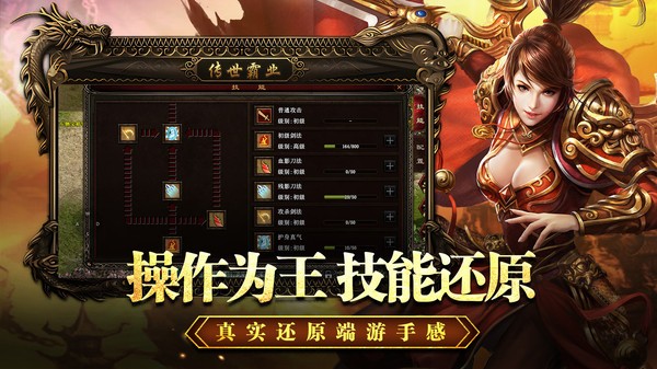 传世霸业官方版是有关传奇类的rpg游戏,玩起来热血感十足,操作简单。完美继承传奇的经典玩法,带来多种职业选择,丰富装备收集,灵活搭配作战,自由交易,尽情挑战,千人同屏,即时竞技,畅快pk,三端互通,玩到停不下来!
