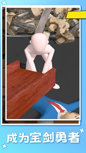 大力出奇迹,趣味的勇士拔剑手游,游戏中你将需要操纵橡皮小人努力的将插在各种不同地方的剑给拔出来,玩家在游戏中需要不断锻炼角色的力量,锤炼拔剑的技巧,想办法将剑拔出,游戏玩法趣味性十足,感兴趣的玩家可以下载体验!