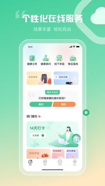 还有一个亮点是个性化服务,可以根据设备数据和个人情况提供建议,帮助用户更好地使用呼吸机,保持良好的呼吸状态。整体来说,这个app不仅功能强大,而且设计得很人性化,对健康管理和远程支持都很有帮助!