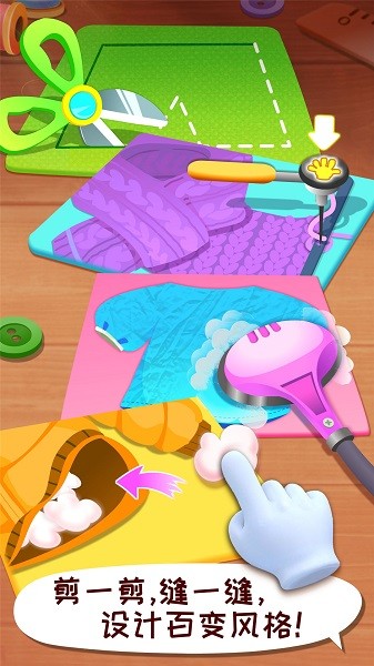 【丰富制衣材料】花色布匹、柔软棉花、卡通口袋、精致腰带……像公主游戏一样,创意时尚。