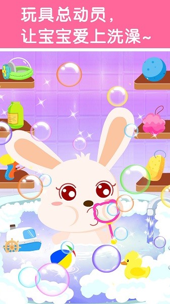 兔一一爱泡澡,浴缸里总是会有了好多好多的泡泡,浴盆里还有各种好玩的玩具呢!