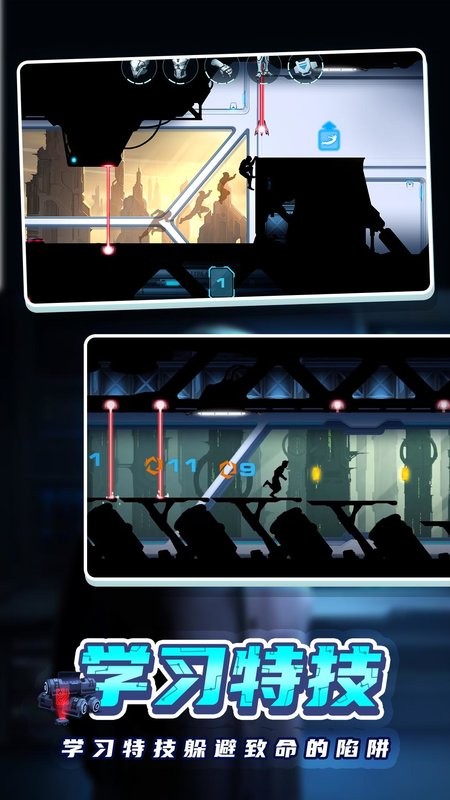 3、游戏将人物弱化成黑色的影子,让你的注意力集中在跑酷上面。