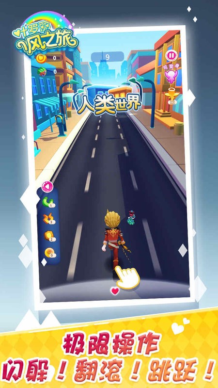 游戏里有丰富的时装系统,可以给角色换造型,搭配出很多好看的风格。最刺激的是还能飞上天,享受随风飘扬的感觉!不过要小心黑暗浪潮里的魔王和怪物,得灵活操作闪躲障碍,比如汽车、石头什么的,考验你的反应力。
