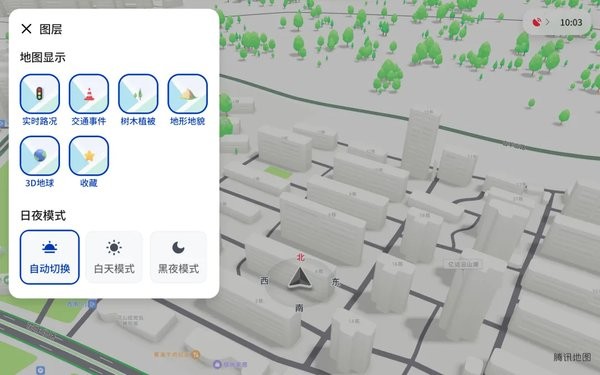 支持修改日夜模式、实时路况、个性化车标、地图缩放。