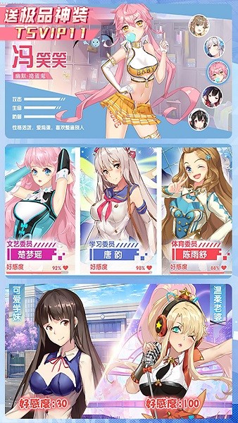 校花梦工厂手游0.1折是一款以校花为主角的卡牌游戏,都是宅男们喜欢的二次元校园女神,赶快来收集吧!此版本上线就送极品校花,把你的女神带回家;并且还有接近满VIP赠送,海量福利都是免费领;让玩家可以把所有校花都招募到手中,想想就开心吧!
