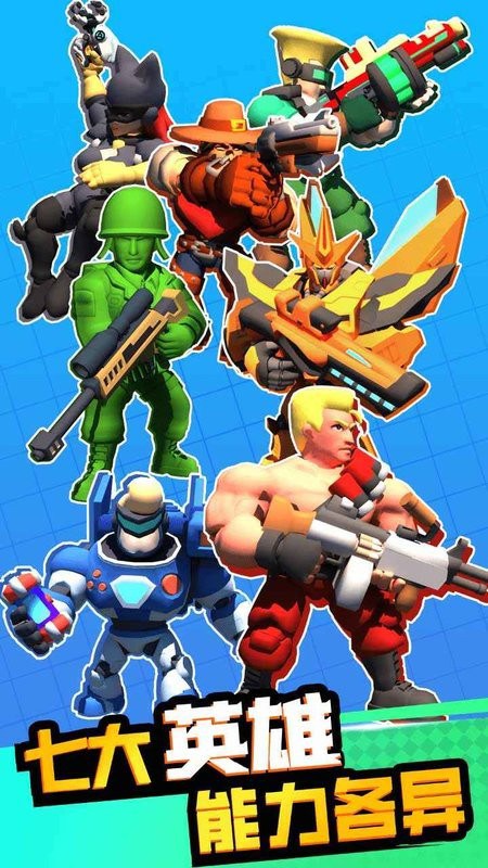 7大英雄,能力各异,收集英雄碎片,解锁各大英雄,用炫酷的技能征服战场上的敌人。