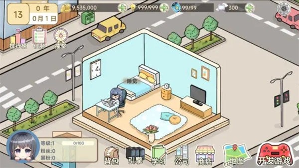 想要成为游戏开发者吗?开局一台电脑!从菜鸟开发员慢慢变成大佬!开办自己的游戏公司,创作属于自己的游戏!招聘众多小哥哥小姐姐!