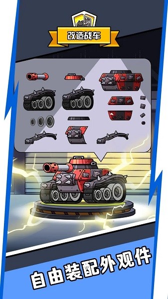 1、在这个游戏里,玩家可以自由组装属于自己的猫猫战车,用各种可爱的猫咪和强大的战车装备来打造独一无二的战斗机器。